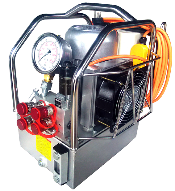 HE-4P系列為液壓扳手專用泵,采用集成方式組裝,由動力單元、電氣電元、控制裝置等組成第一種獨立完整的液壓裝置,具有流量大、體積小、重量輕、結構簡單、操作方便、工作壓力高等特點,并且高壓出口(A口)出油壓力可在70~700bar間任意調節。